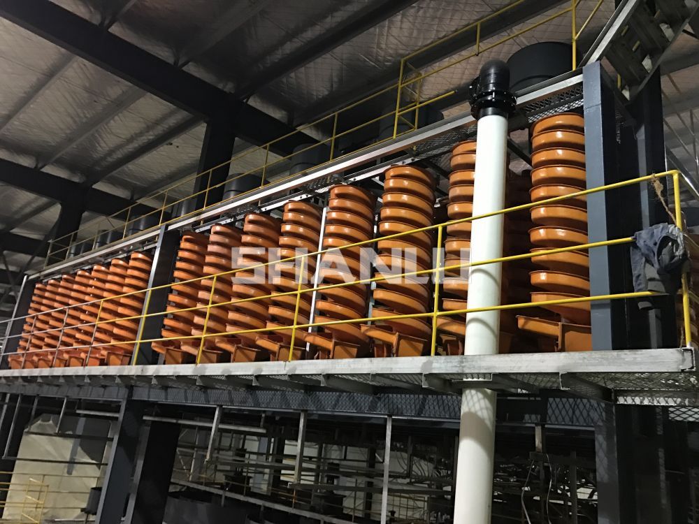 进料:矿石混合物从进料口输入螺旋溜槽。