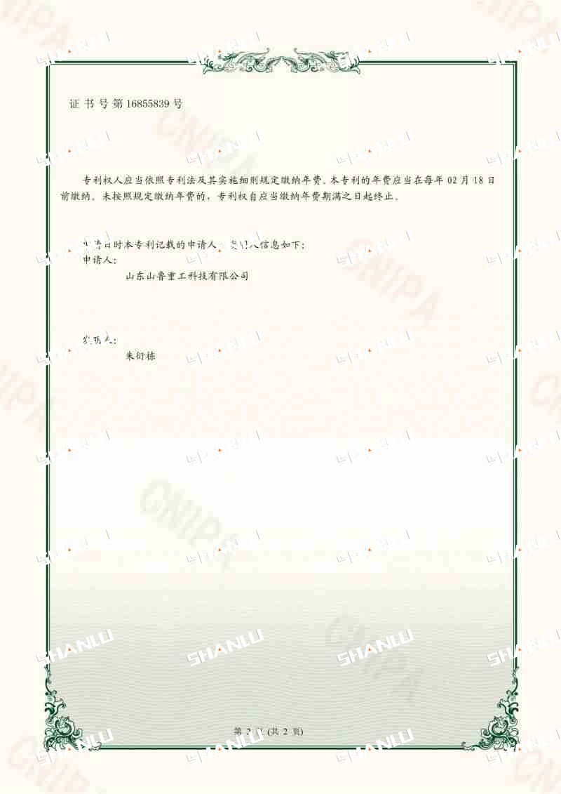 山鲁重工专利证书-一种除尘器的排灰装置